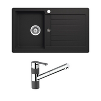 Schock Typos Single Bowl With Left Hand Bowl 1 Tap Hole and Pull Out Kitchen Mixer Onyx Black