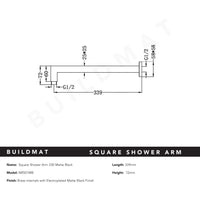 Product Type: Shower ArmsProduct SKU: NR501MBColour: Matte BlackMaterial: Brass L-shaped square shower arm with a length of 340mm 1/2 female thread at the wall, male at the shower Read more