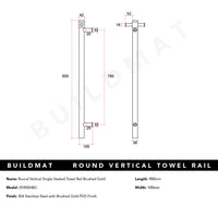 Thermogroup Straight Round Vertical Single Heated Towel Rail Brushed Gold