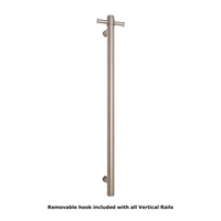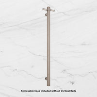 Straight Round Vertical Single Heated Towel Rail Brushed Stainless Steel