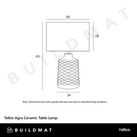 Beautifully crafted from ceramic with a ripple wave texture, the Agra glazed table lamp is finished in either a blue, butterscotch or white glaze. Colour and Material Fixture Colour: Butterscotch,... Read more