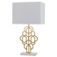 A sophisticated addition to a transitional space, the Akron table lamp is perfect for everyday living. A rectangular shade with gold lining sits atop a laser-cut deco base. The marble... Read more