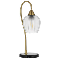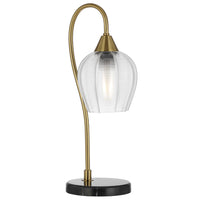 The Azalea table lamp is a stunning fusion of luxury and contemporary design. Its base, crafted from exquisite marble and iron, exudes a sense of opulence and stability. The focal point of this elegant lamp is its glass tulip-shaped shade, offering a delicate and artistic touch to the overall aesthetic. The Azalea table lamp not only provides a warm and inviting glow but also serves as a sophisticated statement piece, seamlessly blending modernity with timeless charm. Illuminate your space with grace and style with the Azalea table lamp. Available in white marble and chrome or black marble and antique gold base.