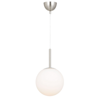 The Bally pendant is the essence of pure and simple lighting design. The sphere is finely blasted opal glass resembling the surface of fresh snow. The rounded shape is continued with the minimal metal gallery. A short metal stem finishes the story of mid-century modernism. Available in 4 sizes and 3 metal finishes.