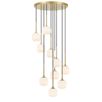 This early century ribbed barrel glass gives a minimalist allure and sleek style for any space in your home. The BOBO collection is best illuminated with a LED twinkle globe accentuating the ribbed surface of the shade. The family includes a 1 light pendant, 1 light wall lamp, 1 light table lamp,2 light table lamp, 4 light bar pendant, 5 light round pendant and 10 light round pendant. Available in Antique gold with opal matt shade or black with smoke.
