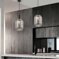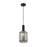 Colour and Material Fixture Colour: Black, Smoke Fixture Finish: Ribbed Fixture Material: Glass Cable Colour: Black Cable Material: Textile Canopy Colour: Black Glass Colour: Smoke Glass Finish: Gloss Size Fixture... Read more