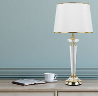 The glamourous Diana table lamp is crafted from hand polished crystal and accent with mirror finish metalware. The white fabric shade is trim to match the base. The style is... Read more