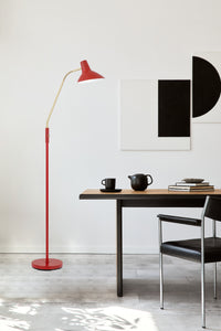 The FARBON floor lamp is a great portrait of mid-century modernist style. The subtle curves and clean lines reflect the informal hip and trendy classic style. Presented in 6 contemporary colours with a brass matt flexi-arm for adjustment and a bespoke on-off switch on the base.