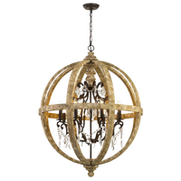 The eye-catching Florin pendant is a French crystal teardrop chandelier framed by a classic wooden open cage orb. The distressed timber combined with the iron accents soften the industrial look... Read more