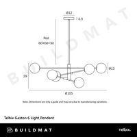 Telbix Gaston 6 Light Pendant Black Frost Tear