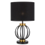 This GRADA lamp mixes a cage-inspired round body fashioned of black finish metal with a high polished antique gold accents. A round, fabric hardback drum shade complete with inner gold... Read more