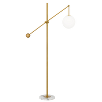 The KEMI floor lamp's sleek and simple design make it a perfect fit for any décor, and its vintage mid-century style adds a touch of charm to any space. The metalware is simple and angled, and is paired with a marble base for a chic and sophisticated touch. The Kemi comes in two finishes, including antique gold and satin black, so you can choose the one that best fits your décor. The mouth-blown shade adds a unique touch to the lamp and diffuses the light to create a warm and inviting atmosphere.