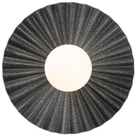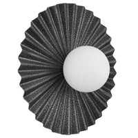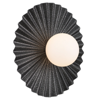 The Kinso wall light features a striking contemporary-industrial design with a textured finish. Its sculptural, pleated form radiates outward, complementing a central illuminated globe for a dramatic effect. Available in... Read more
