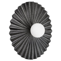 The Kinso wall light features a striking contemporary-industrial design with a textured finish. Its sculptural, pleated form radiates outward, complementing a central illuminated globe for a dramatic effect. Available in... Read more