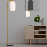 The Lark table lamp is designed to accent your modern home with its simple and sleek design. The thick round marble base holds a tall thin curved body that suspends... Read more