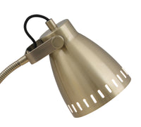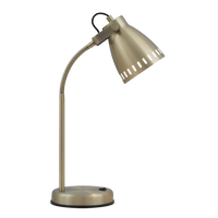 The Nova desk lamp amalgamates the finest elements of contemporary design. Spun metal shade to house a standard A60 globe attached by a saddle deco and a half flexi arm for adjustment. On/off rocker switch located on the lamp base. Also available as floor lamp.