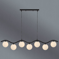 The Orton 7 light pendant is a chic and distinctive lighting fixture with a wavy frame which is available in antique gold or black. The pendant features seven glass shades... Read more