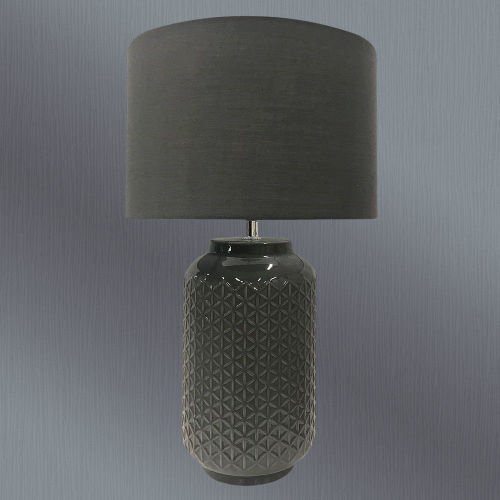 The Pascal table lamp is a combination of a glossy grey lacquered ceramic base with a beautiful raise pattern and a matching grey fabric shade. In addition to its function... Read more