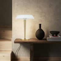 The Teatro table lamp combines elegant design with modern functionality. Featuring a sturdy iron base, this lamp is equipped with integrated LED lighting for energy efficiency and longevity. Available in both antique gold and nickel finishes, it effortlessly enhances any interior decor with its timeless charm and versatile appeal.