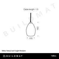 Telbix Tolosa Led 1 Light Pendant Black