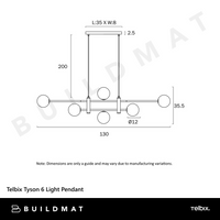 Telbix Tyson 6 Light Pendant Black Clear Prism