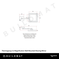 Thermogroup Ablaze 3x Magnification Wall Mounted Shaving Mirror 200mm Square Black