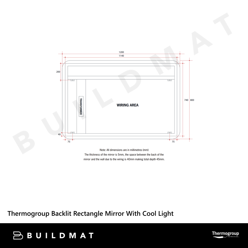 Thermogroup Ablaze Backlit Rectangle Mirror With Cool Light 1200x800mm 108Watts