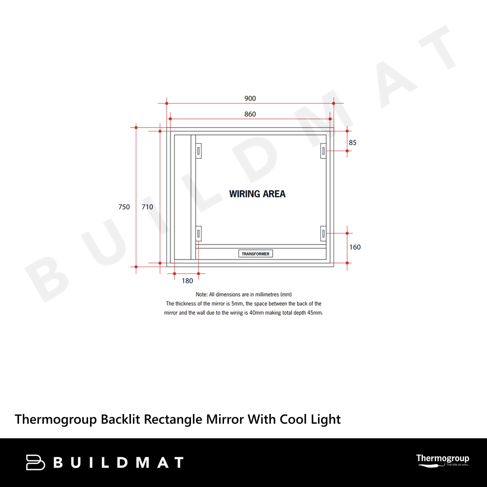 Thermogroup Ablaze Backlit Rectangle Mirror With Cool Light 750x900mm 85Watts