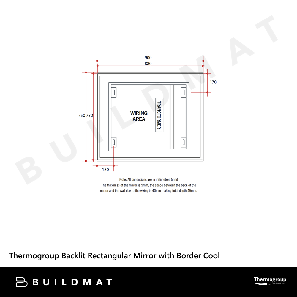 Thermogroup Ablaze Backlit Rectangular Mirror with Border Cool 750x900x45mm 62Watts
