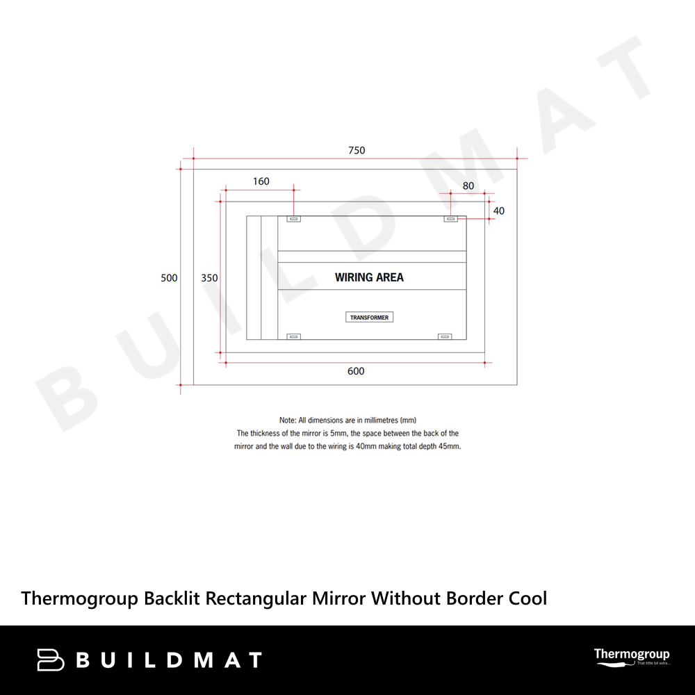 Thermogroup Ablaze Backlit Rectangular Mirror Without Border Cool 750x500x45mm 35Watts