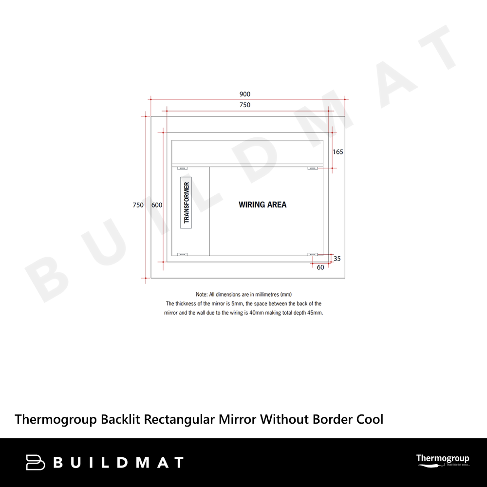 Thermogroup Ablaze Backlit Rectangular Mirror Without Border Cool 900x750x45mm 57Watts