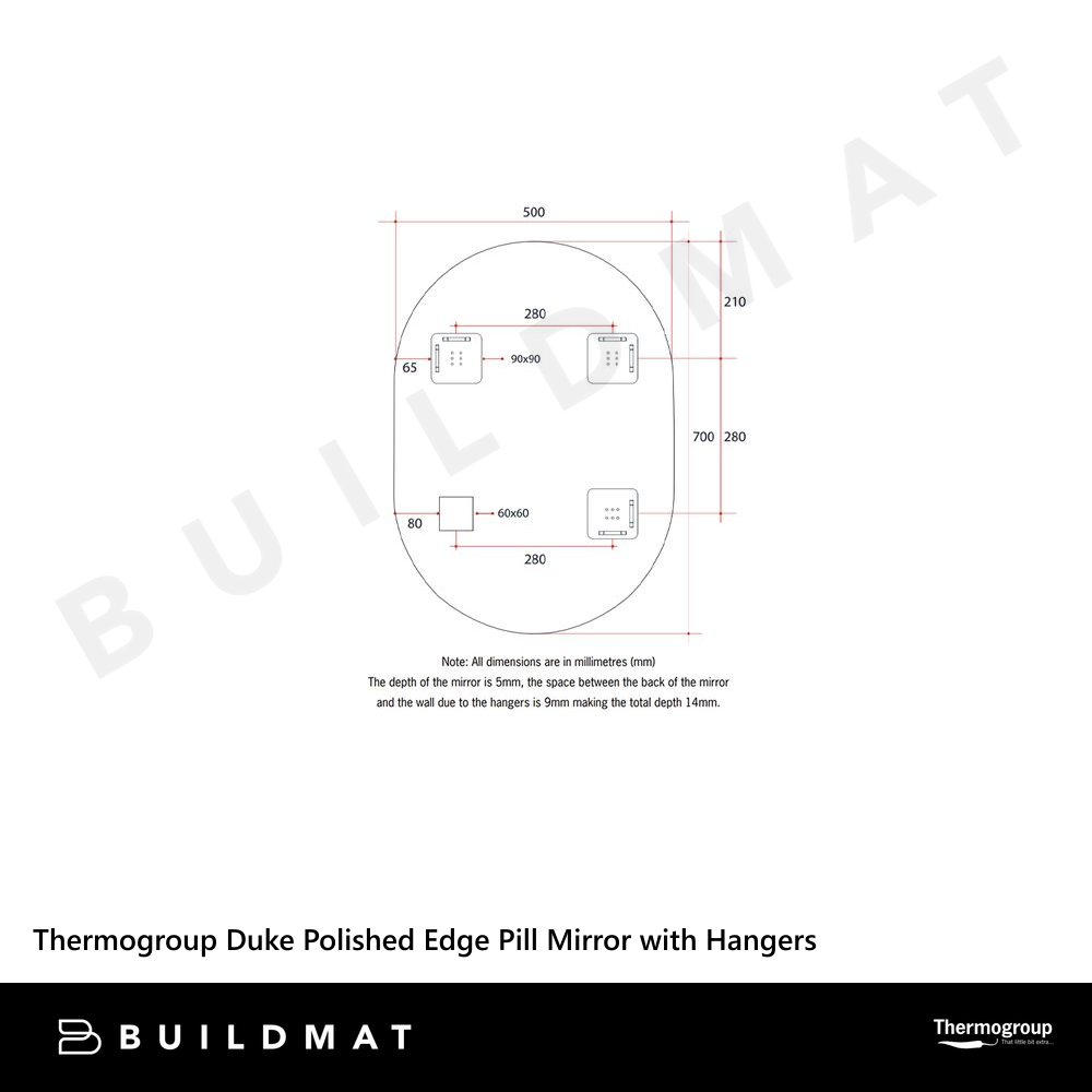 Thermogroup Ablaze Duke Polished Edge Pill Mirror 500x700mm