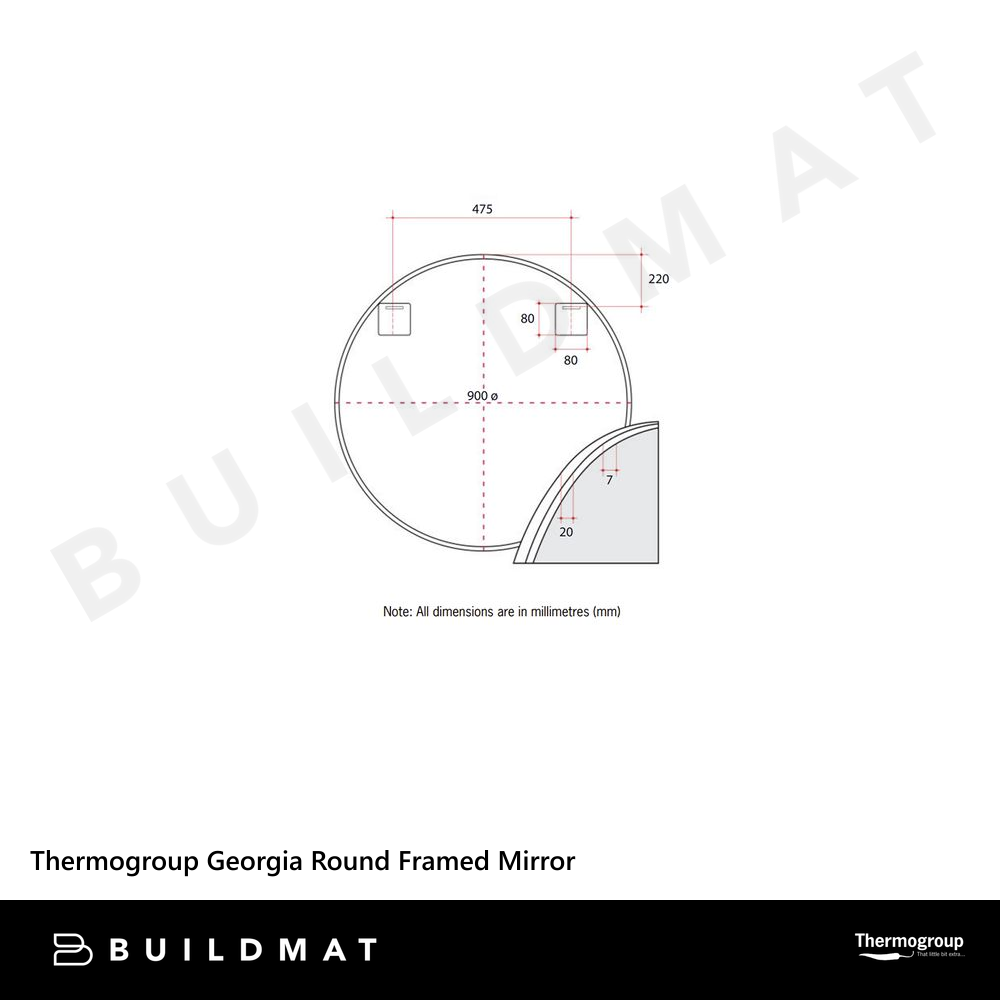Thermogroup Ablaze Georgia Round Framed Mirror 900mm White