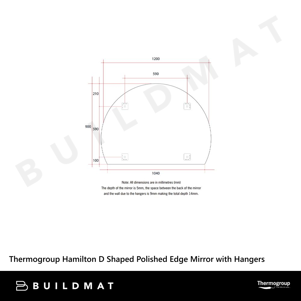 Thermogroup Ablaze Hamilton D Shaped Polished Edge Mirror 1200x900mm with Demister