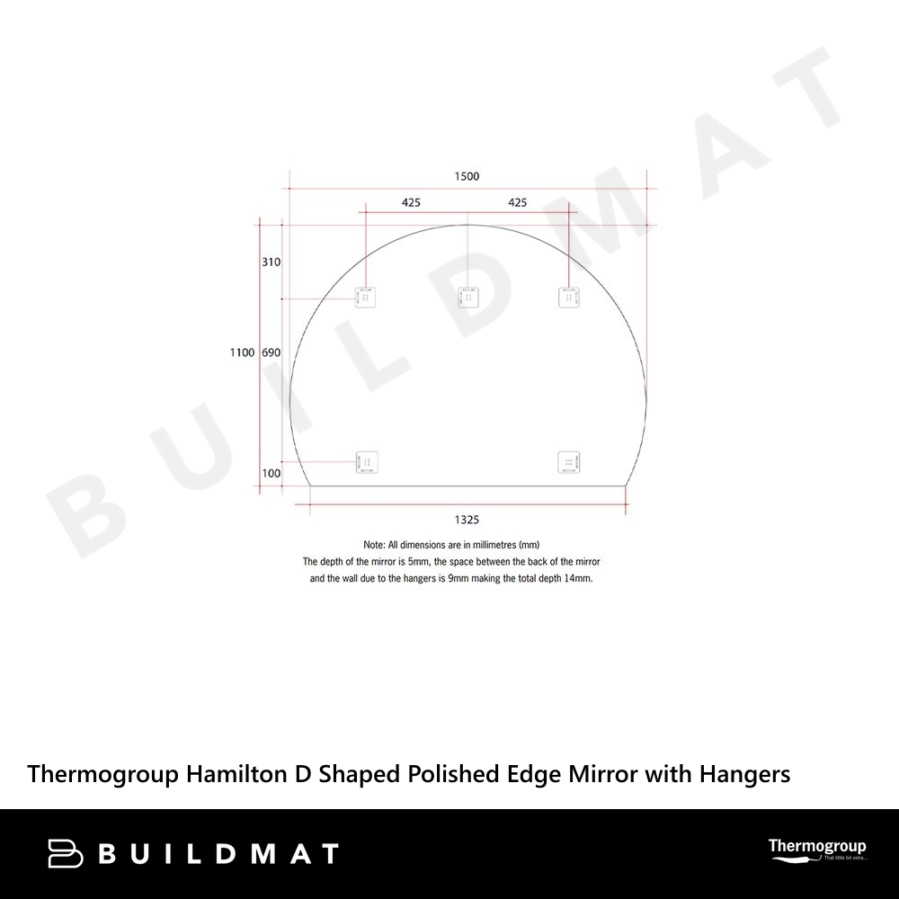 Thermogroup Ablaze Hamilton D Shaped Polished Edge Mirror 1500x1100mm
