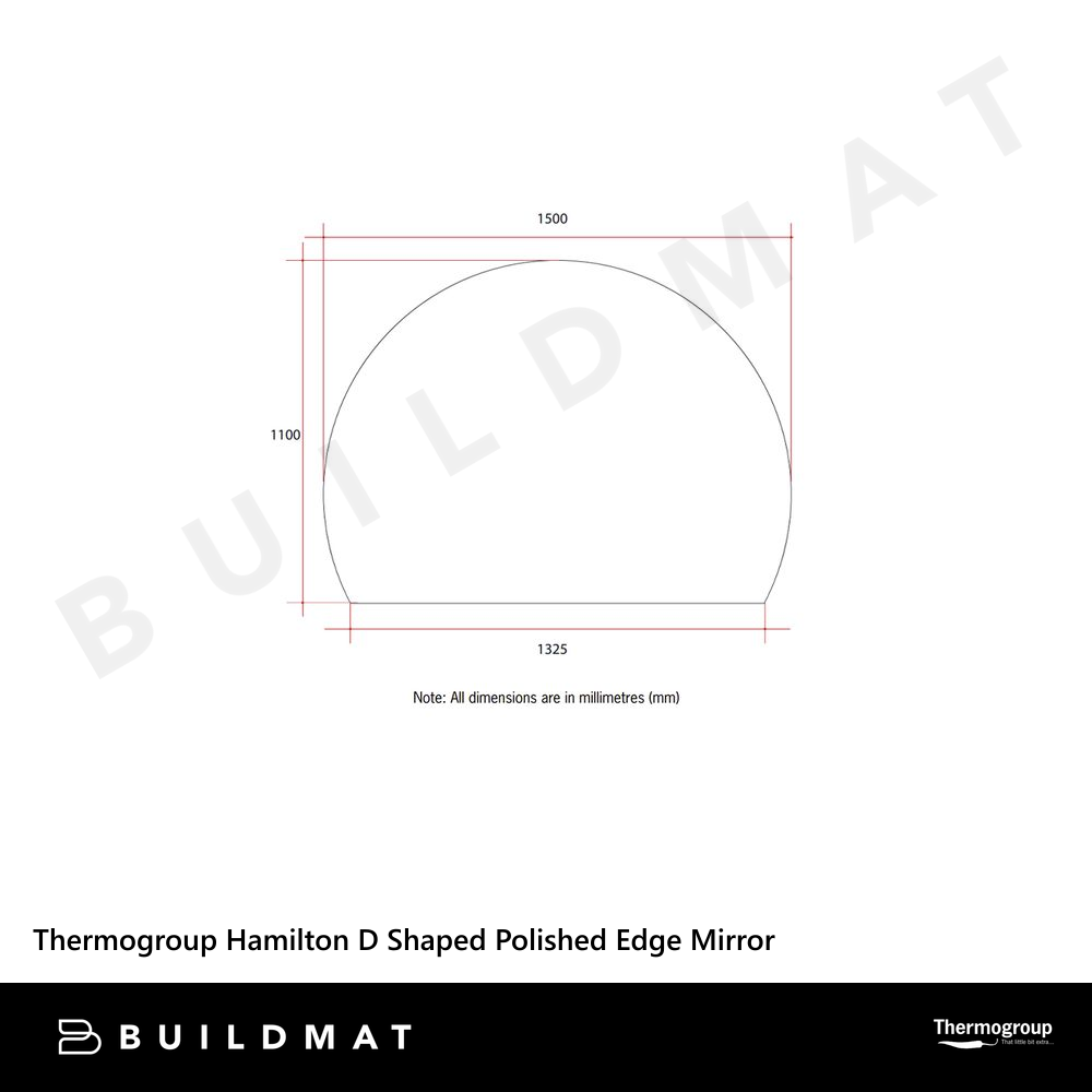 Thermogroup Ablaze Hamilton D Shaped Polished Edge Mirror 1500x1100mm with Demister