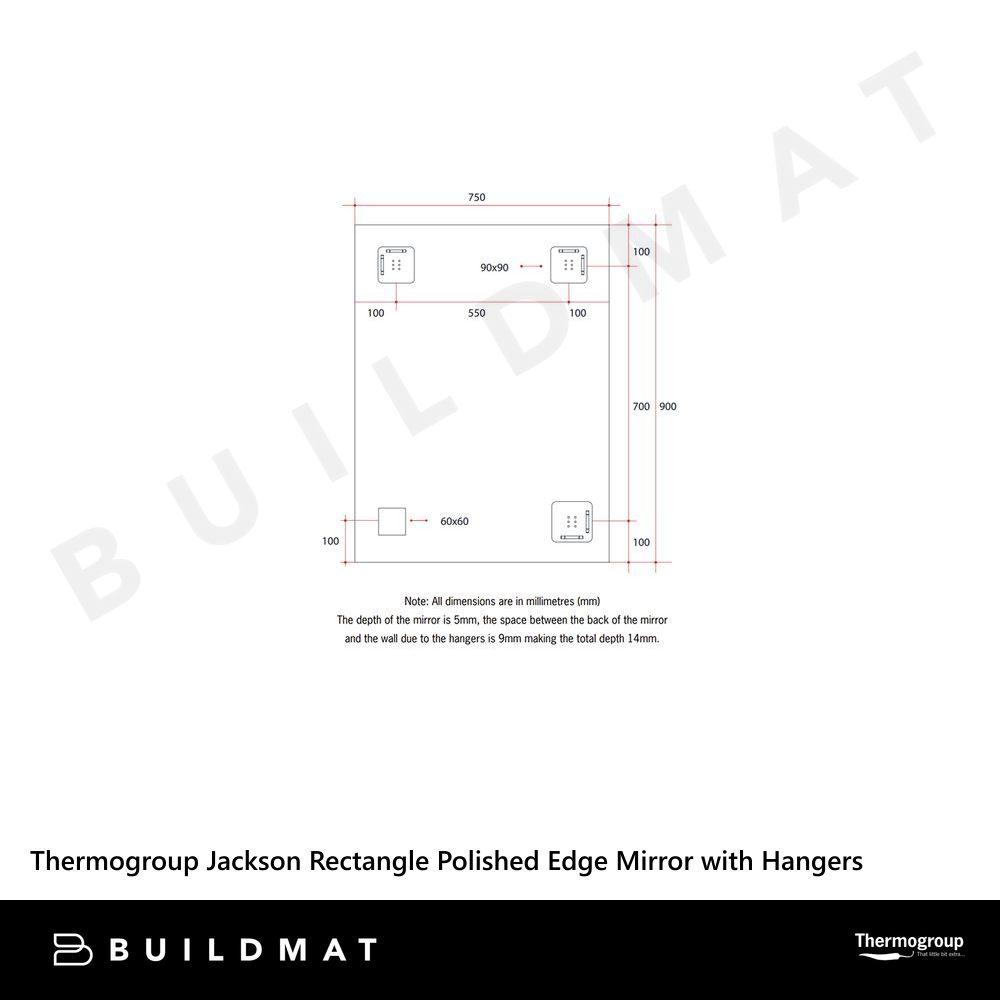 Thermogroup Ablaze Jackson Rectangle Polished Edge Mirror 900x750mm with Demister