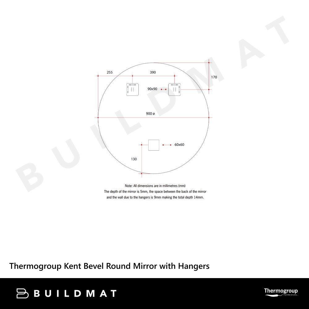 Thermogroup Ablaze Kent 18mm Bevel Round Mirror 900mm with Demister