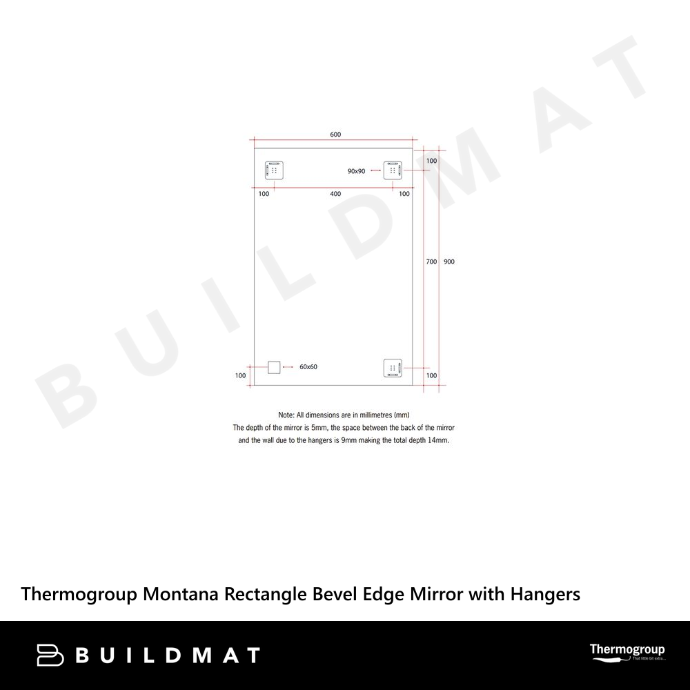 Thermogroup Ablaze Montana Rectangle 25mm Bevel Edge Mirror 600x900mm with Demister