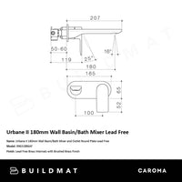Caroma Urbane II 180mm Wall Basin/Bath Mixer and Outlet Round Plate Lead Free Brushed Brass