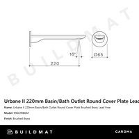 Caroma Urbane II 220mm Basin/Bath Outlet Round Cover Plate Lead Free Brushed Brass
