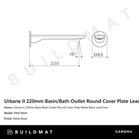 Caroma Urbane II 220mm Basin/Bath Outlet Round Cover Plate Lead Free Matte Black