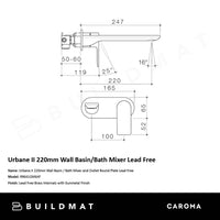Caroma Urbane II 220mm Wall Basin/Bath Mixer and Outlet Round Plate Lead Free Brushed Gunmetal