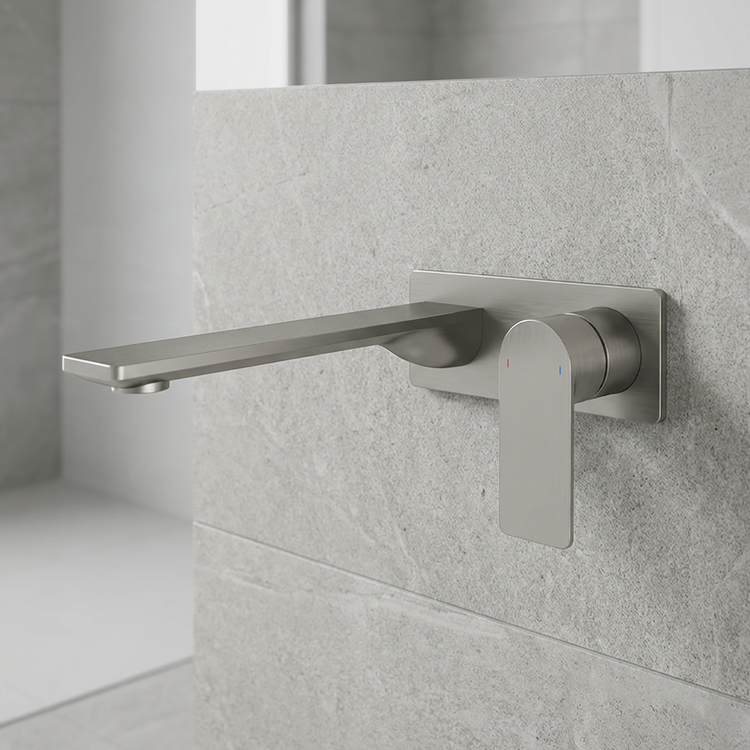 Caroma Urbane II 220mm Wall Basin/Bath Mixer Rectangular Cover Plate Lead Free Brushed Nickel
