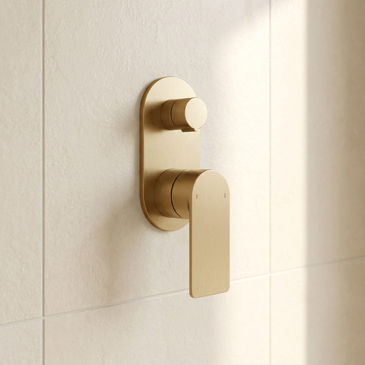 Caroma Urbane II Bath/Shower Mixer With Diverter Round Cover Plate Brushed Brass