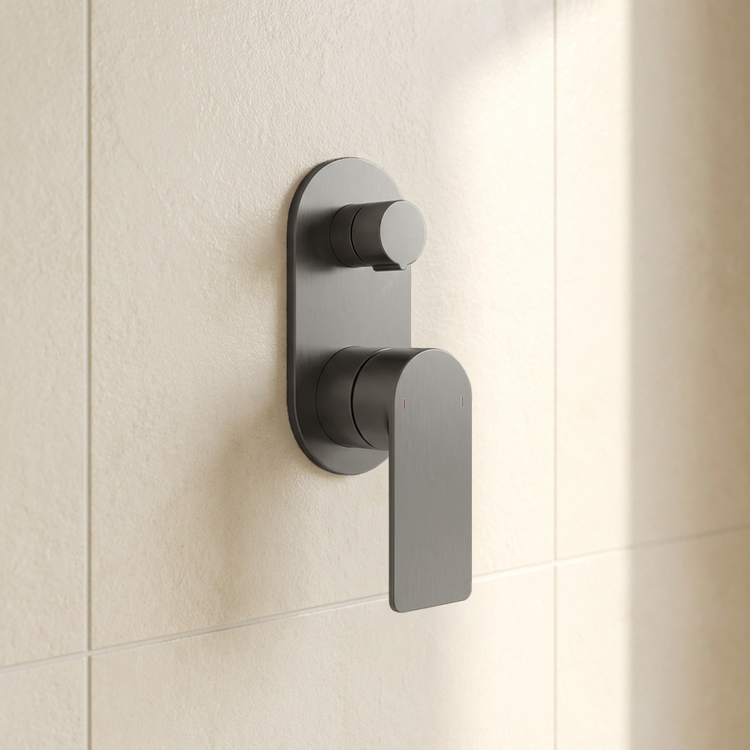 Caroma Urbane II Bath/Shower Mixer With Diverter Round Cover Plate Gunmetal