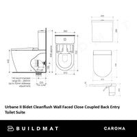 Caroma Urbane II Bidet Cleanflush Wall Faced Close Coupled Back Entry Toilet Suite