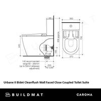 Caroma Urbane II Bidet Cleanflush Wall Faced Close Coupled Bottom Inlet Toilet Suite