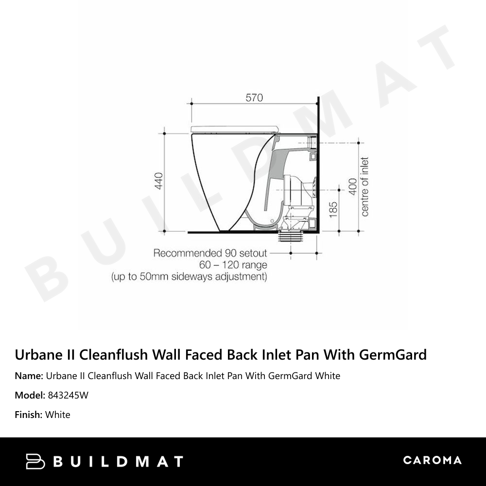 Caroma Urbane II Cleanflush Wall Faced Back Inlet Pan With GermGard White