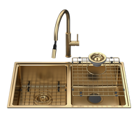 Caroma Urbane II Double Bowl Sink with Liano II Pull Out Sink Mixer Brushed Brass